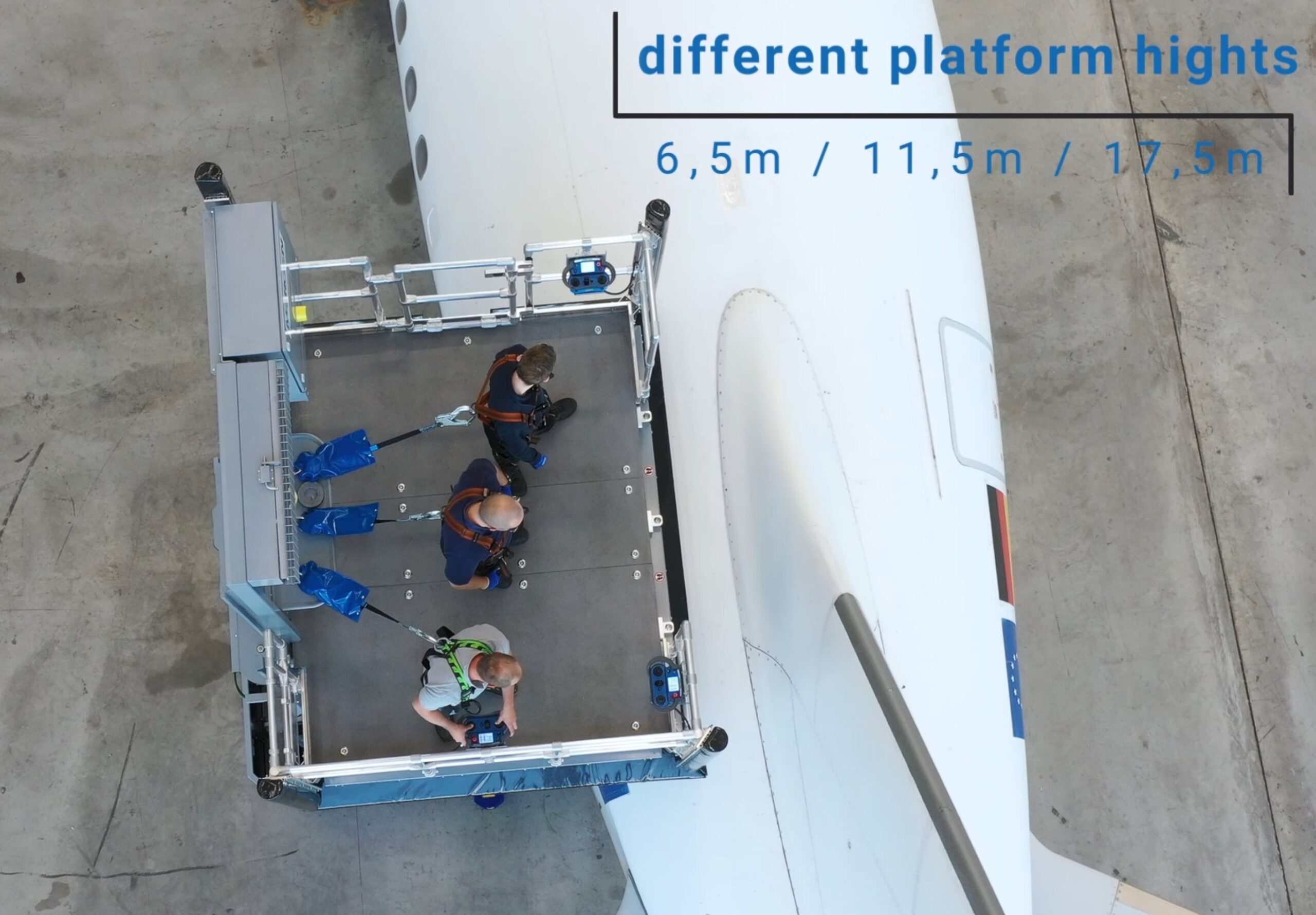 Speziell auf die Bedürfnisse der Luftfahrtechnik abgestimmt vereinen unsere innovativen Arbeitsbühnen bestmögliche Flexibilität und Komfort bei höchsten Sicherheitsstandards und Anfahrschutz. Ob für MRO oder Lackierarbeiten, unsere Anlagen bieten Ihnen hierzu eine breite Basis und Optionen.